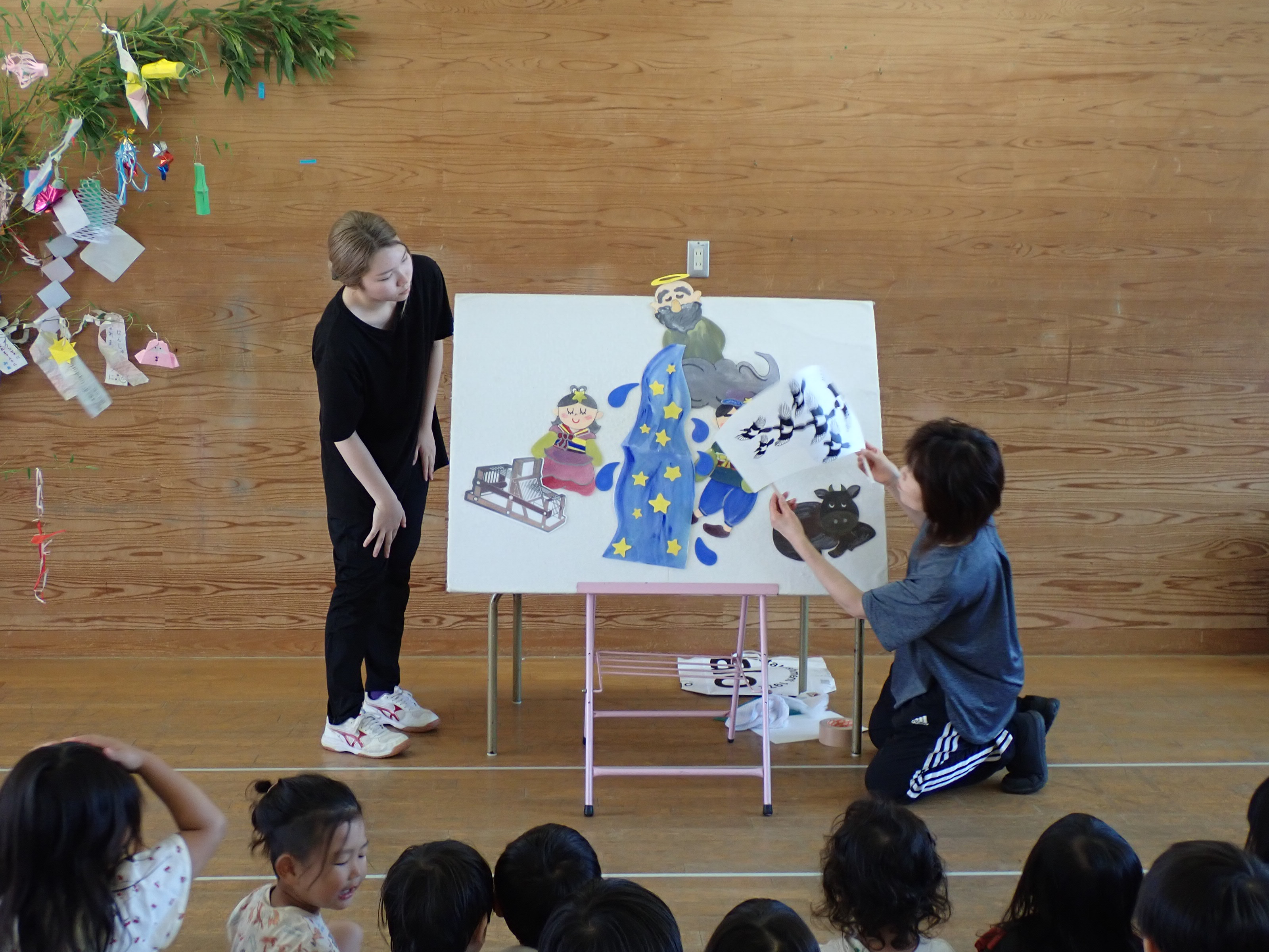 始めに「おりひめさま、ひこぼしさま」のパネルシアターを見ました。