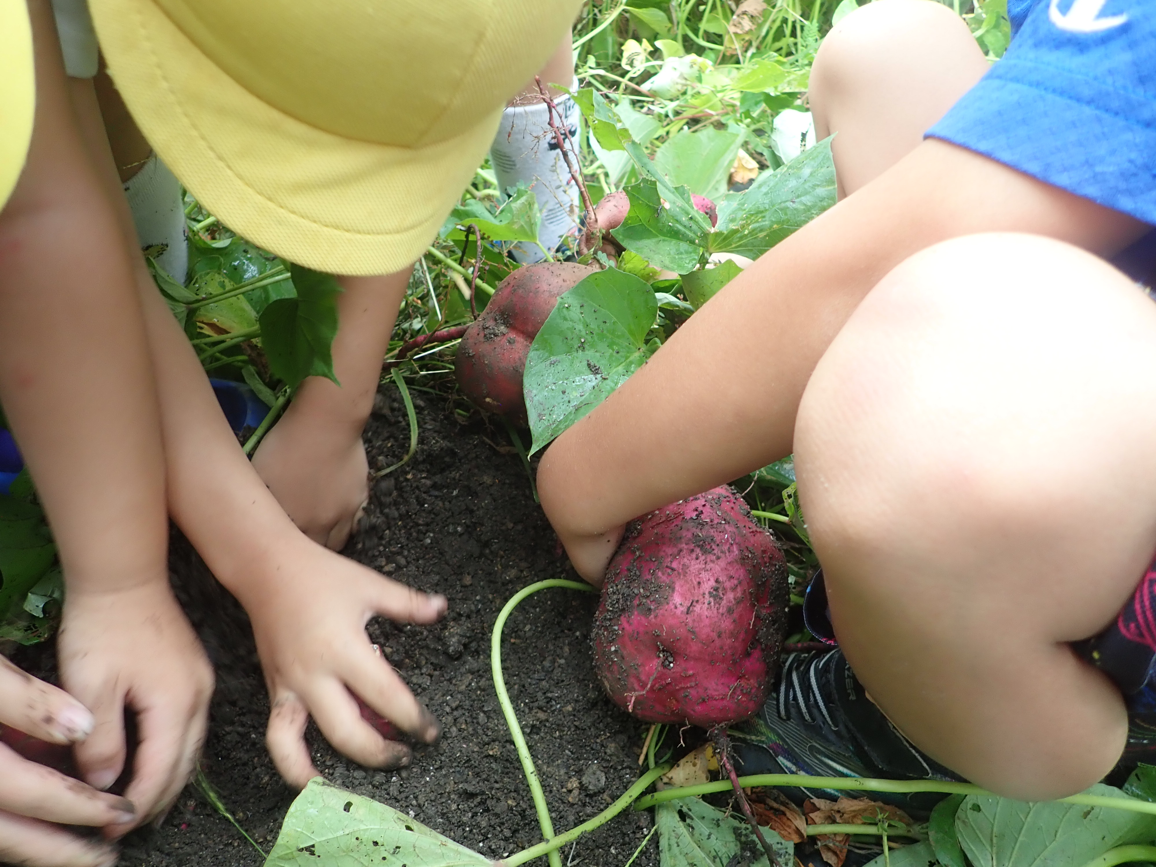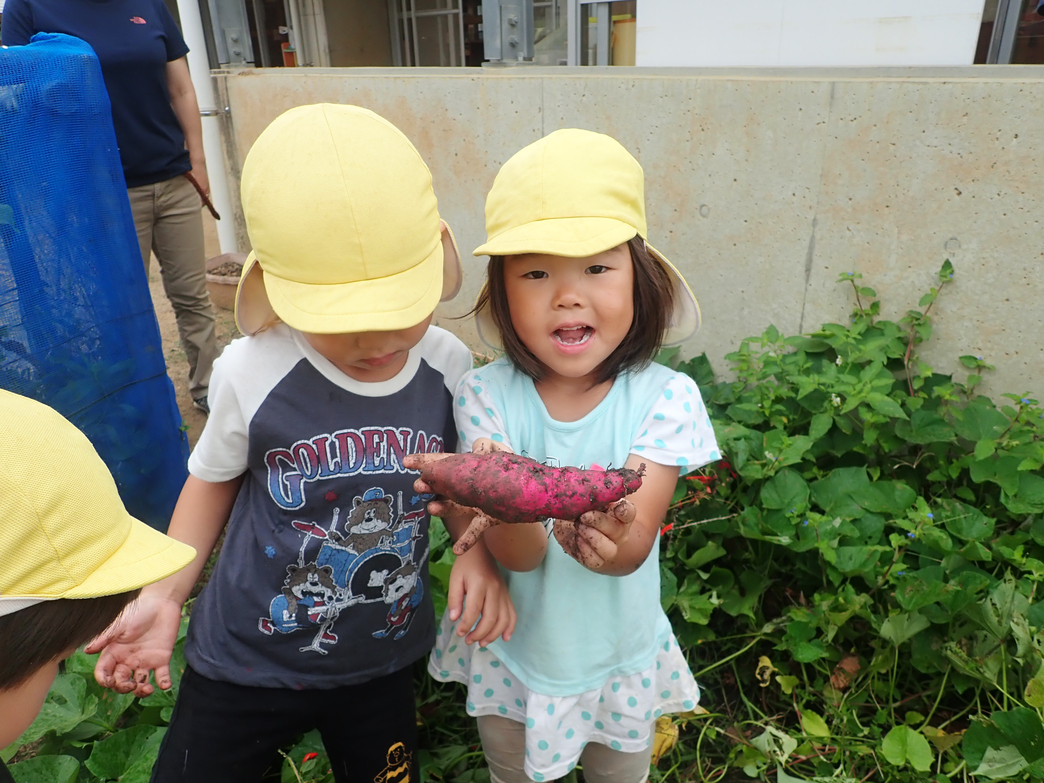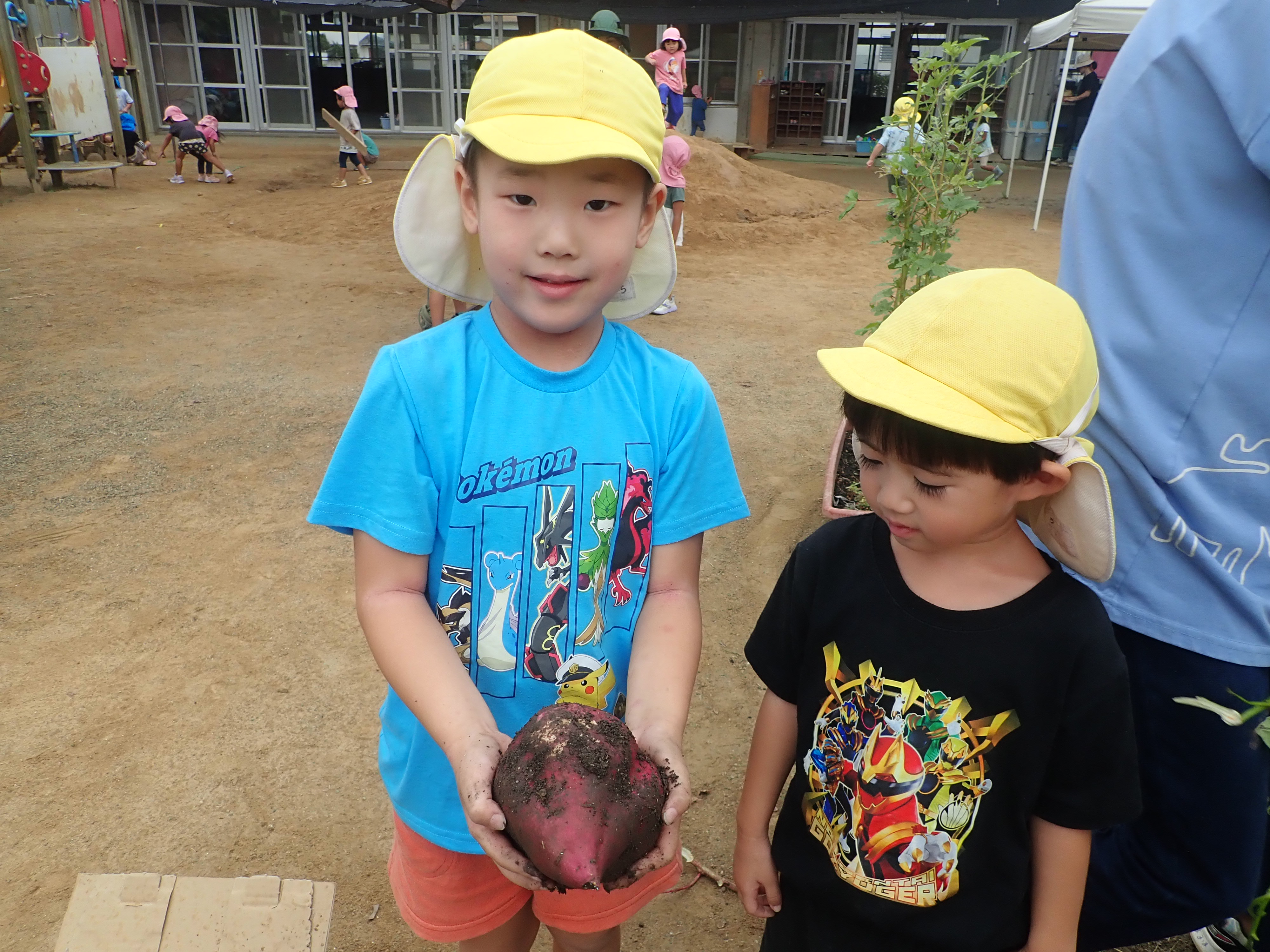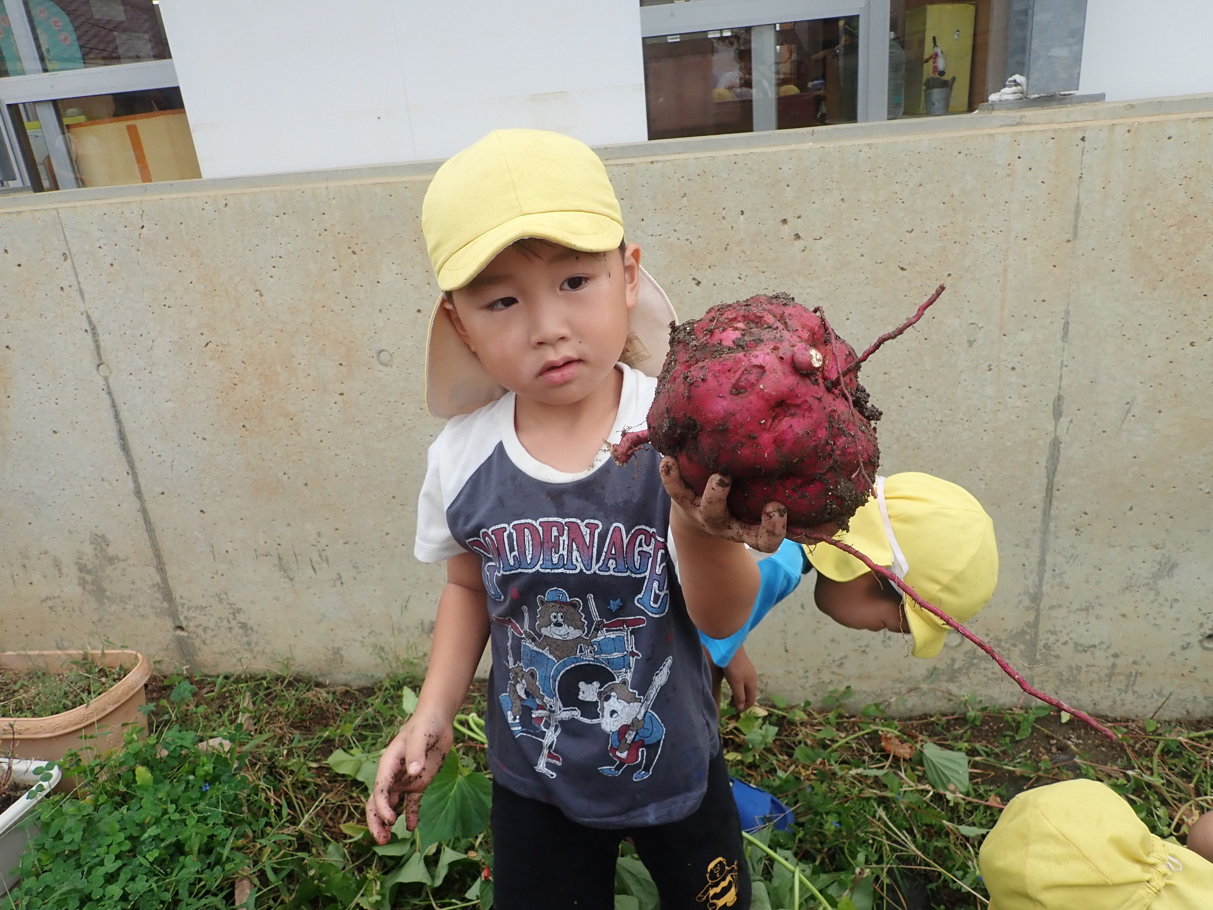 大きないもだ!!保育園で収穫したさつまいもは、さっそく給食の食材になります。きっとおいしいだろうな。