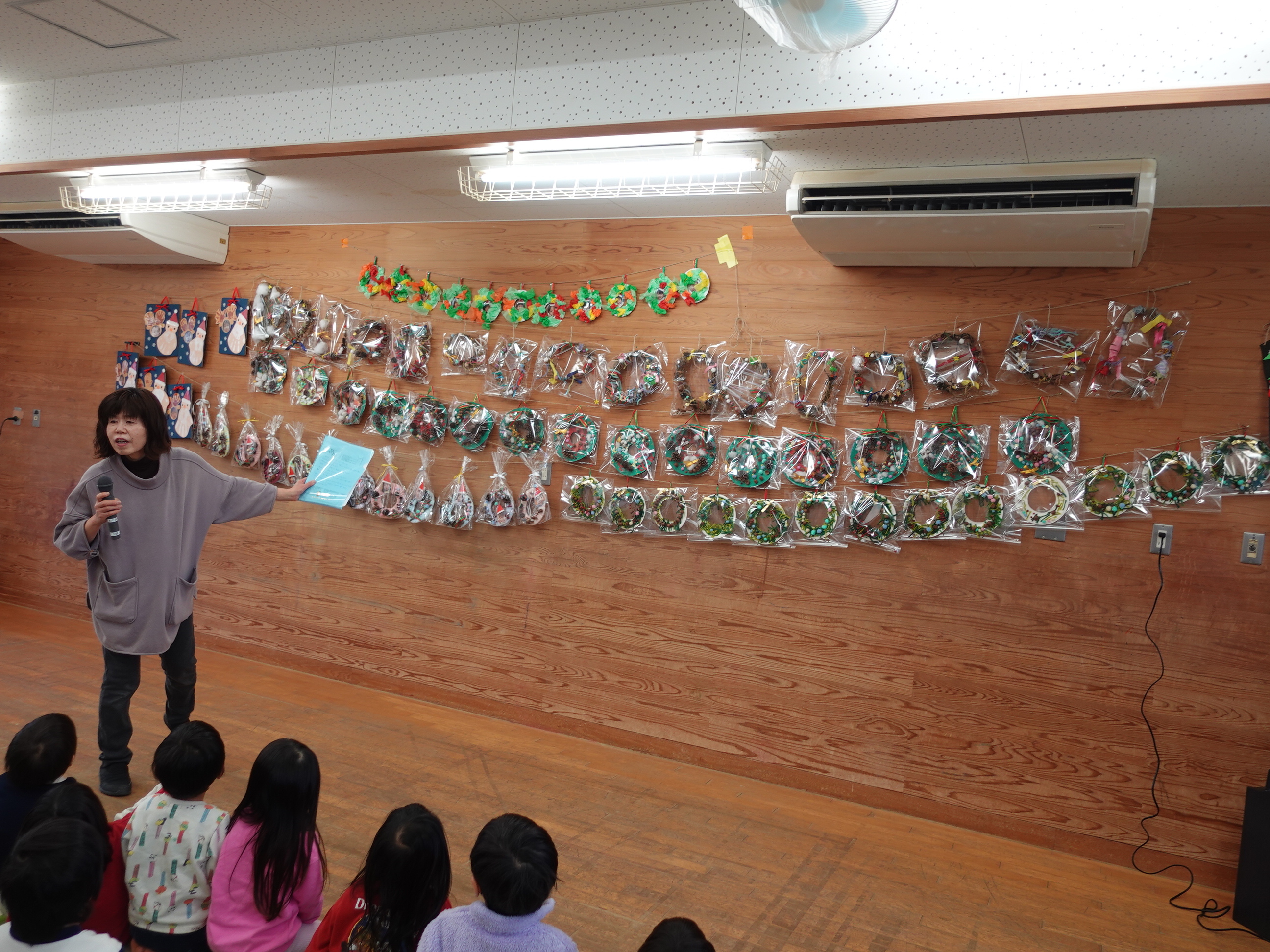 各クラスのクリスマスリースの製作の紹介をしました。